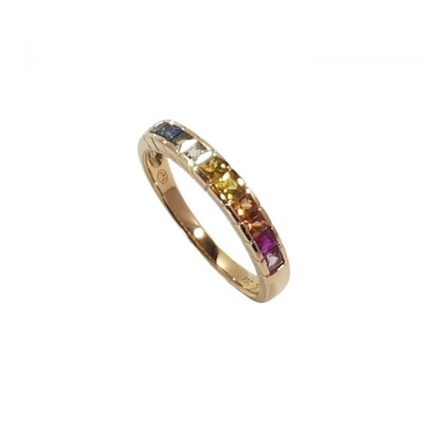 Bague Alliance avec saphirs multi couleurs sur or jaune 750/1000.