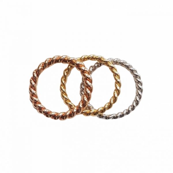 Vous pouvez doubler ou tripler la bague dans une autre couleur d’or afin de créer un effet bicolore ou tricolore (voir nos photos).
