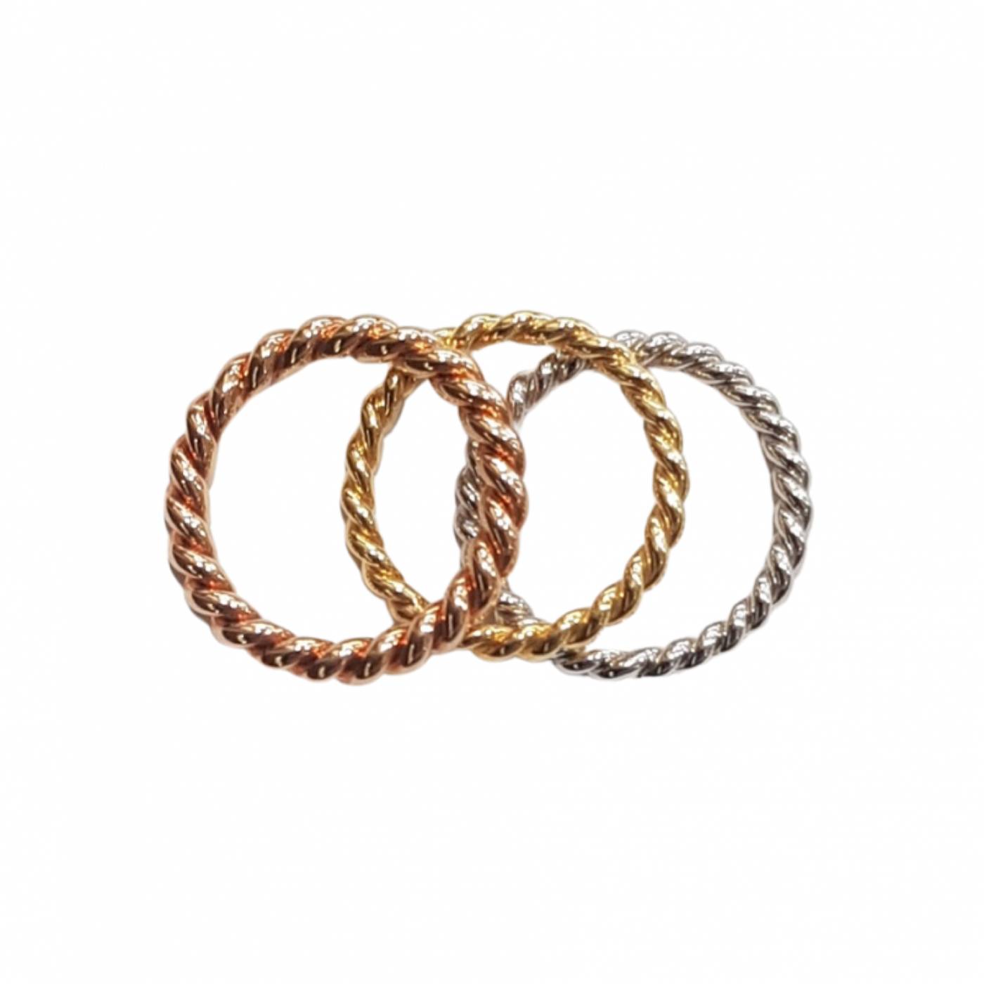 Bague en fil torsadé massif qui prend toute la lumière à chaque godron.