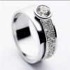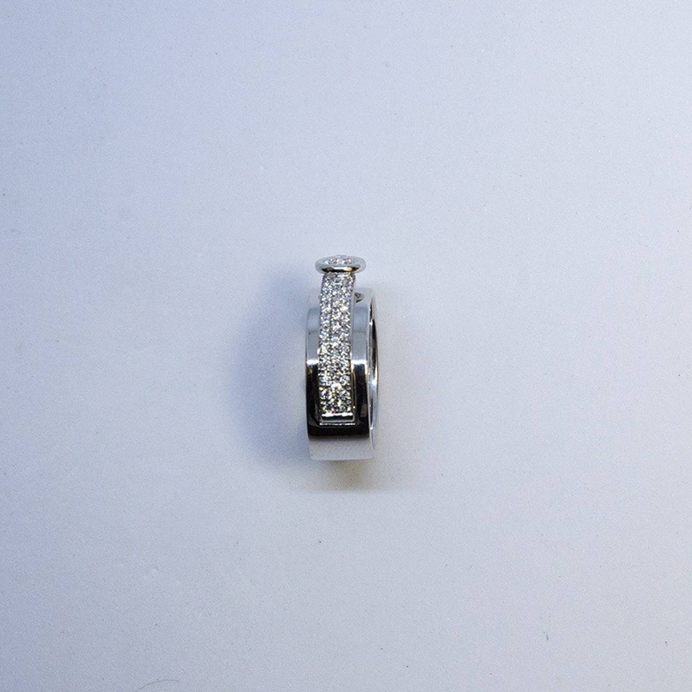 Un solitaire de centre diamant de 0.25 carat  ou de 0.38 carat ,serti clos aérien, accompagné de sa ‘languette » diamant pavage 0.25 carat.