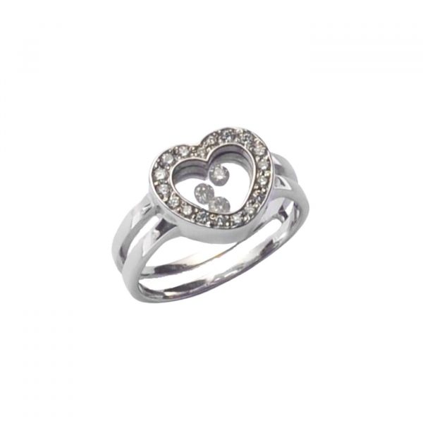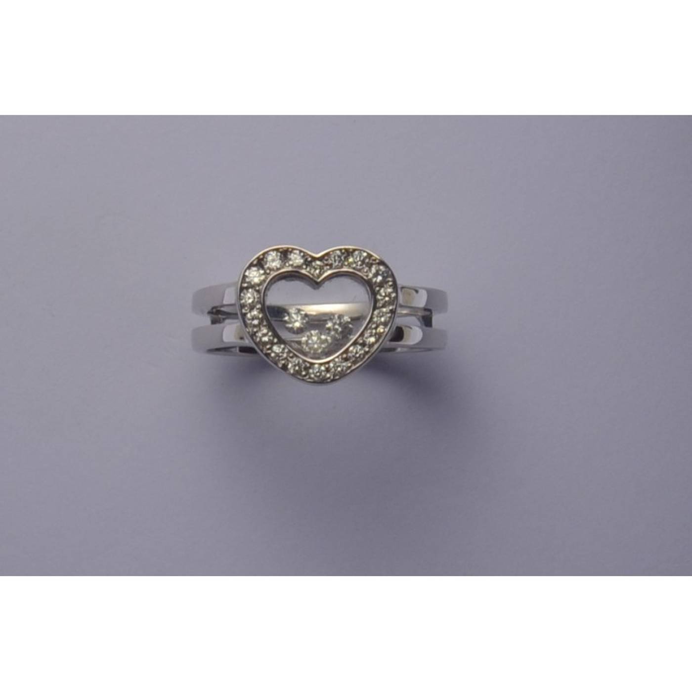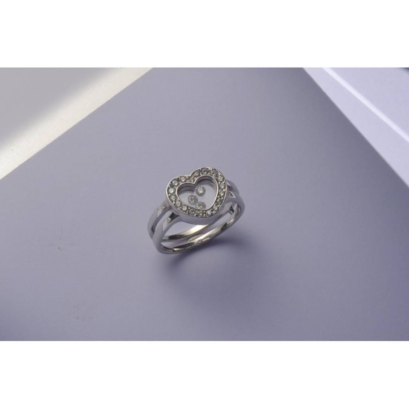 Bague avec en son centre 3 diamants mobiles insérés entre 2 glaces minérales (non étanche).