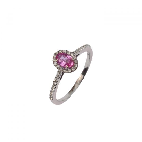 Magnifique saphir rose ovale (0.70 carat) serti 4 griffes.