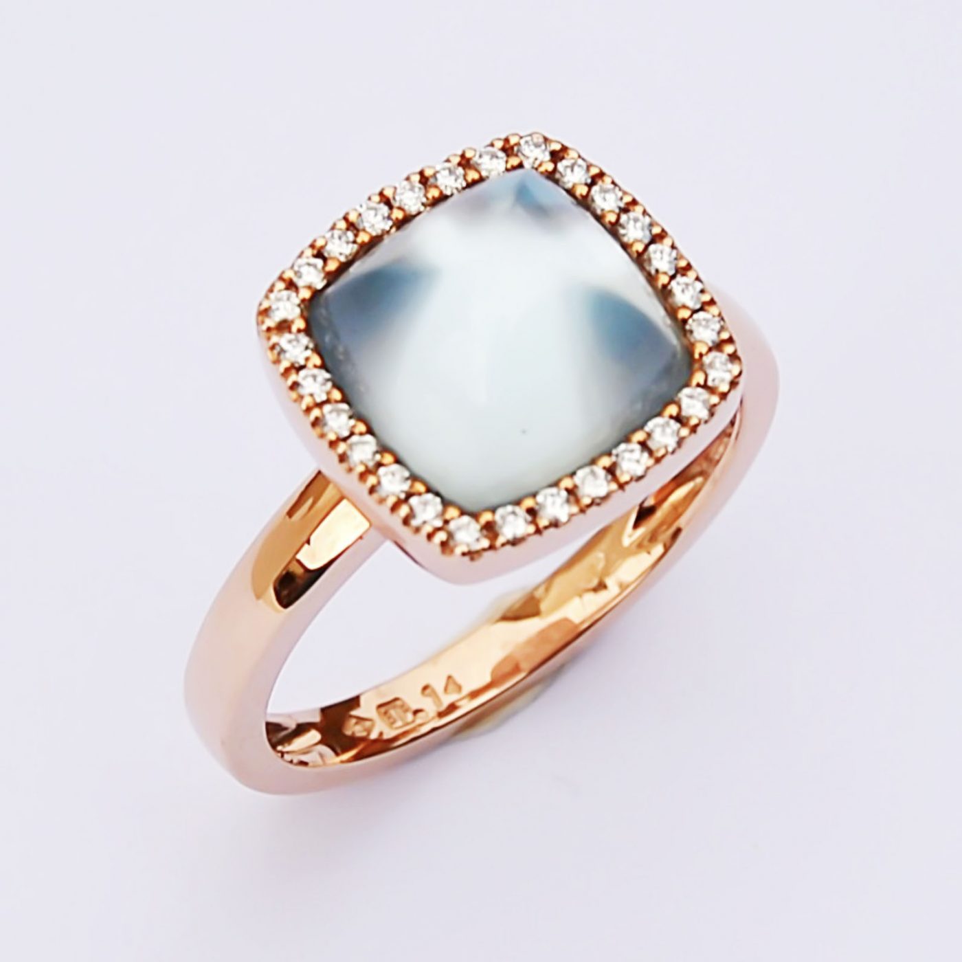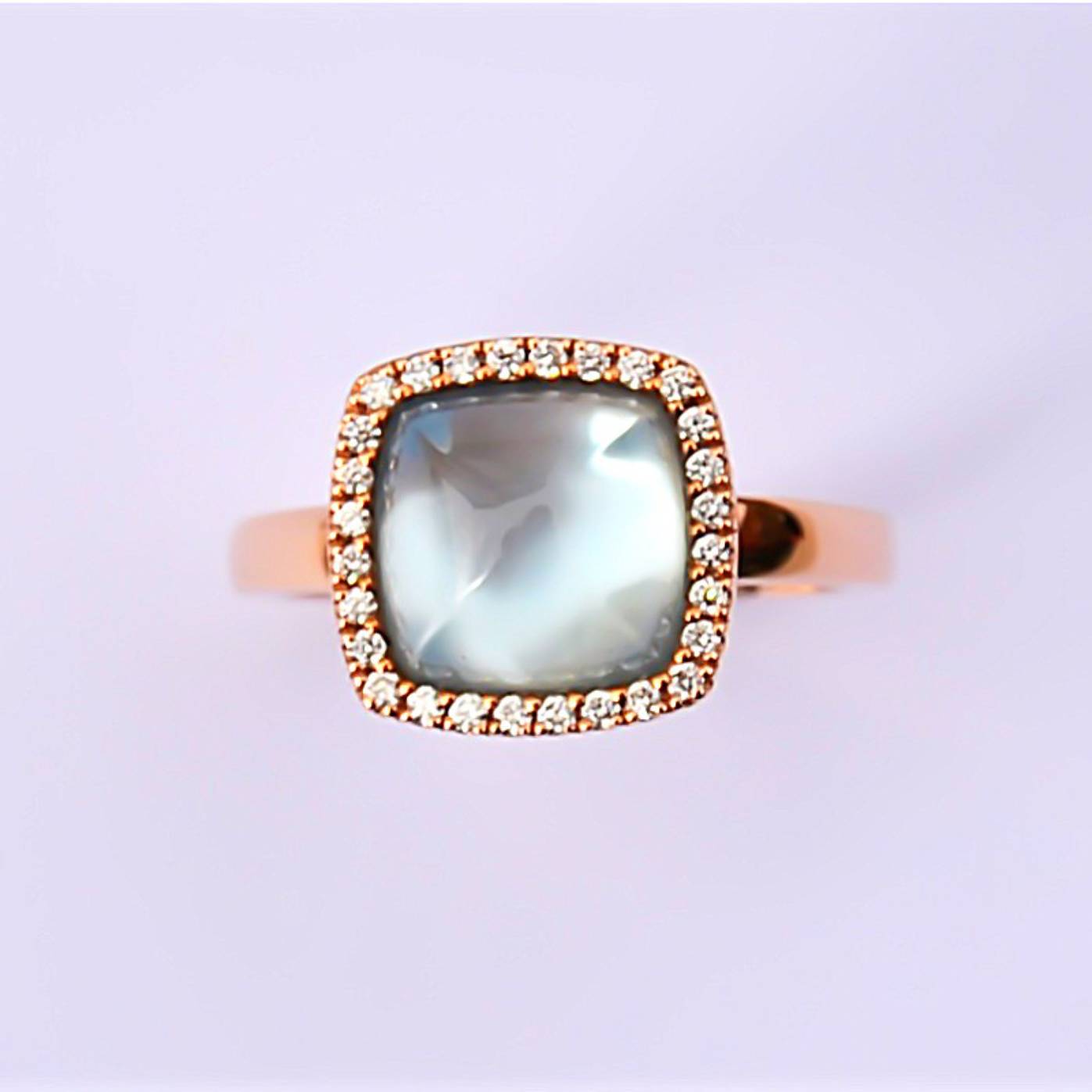 L’entourage diamant permet de magnifier cette jolie pierre.