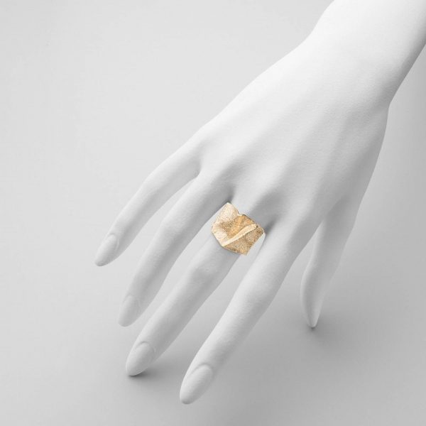Bague forme ruban ondulé satiné piqueté finition sculptée.