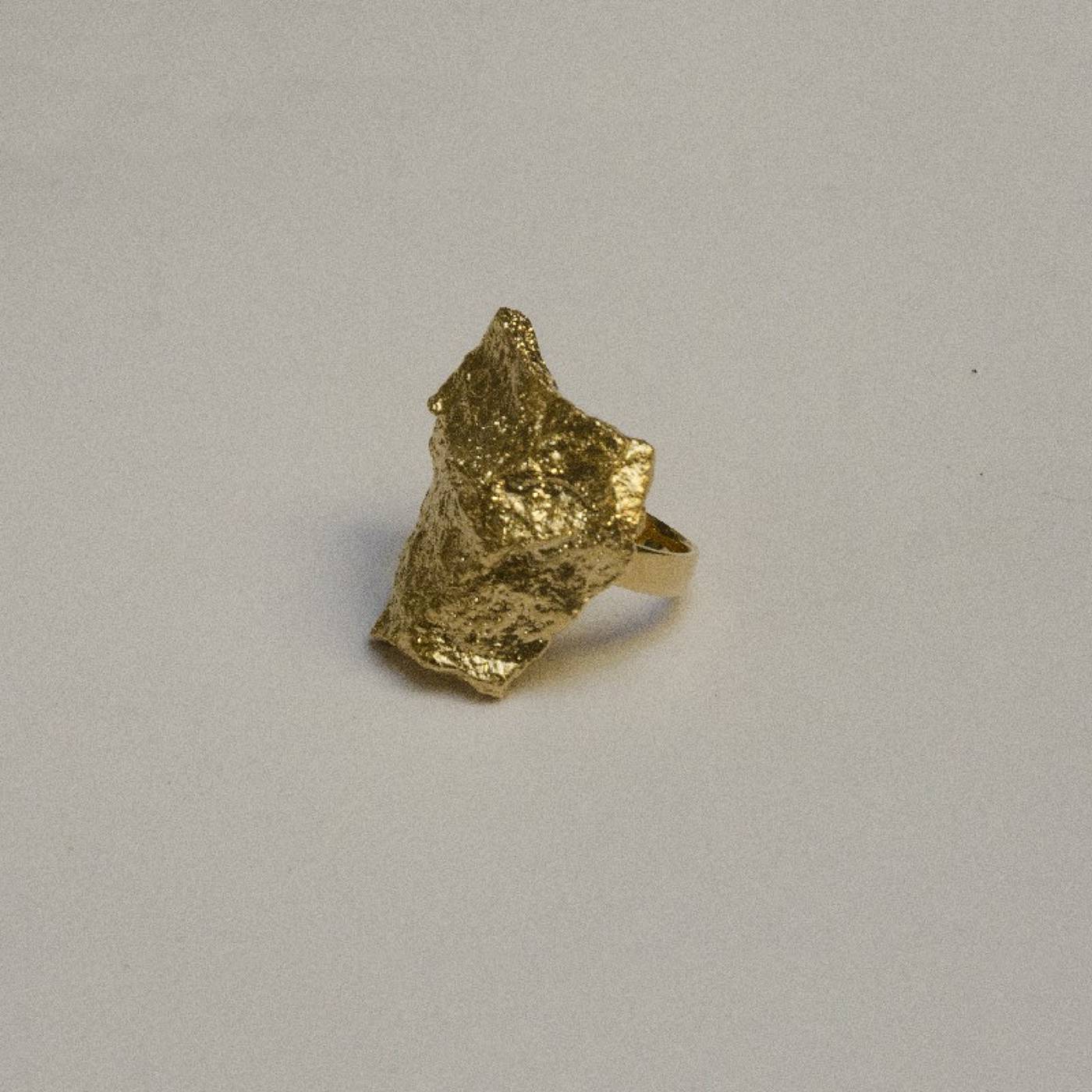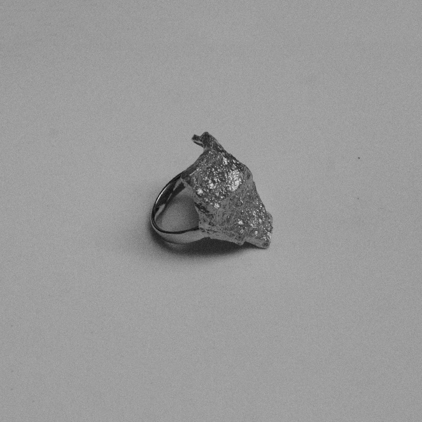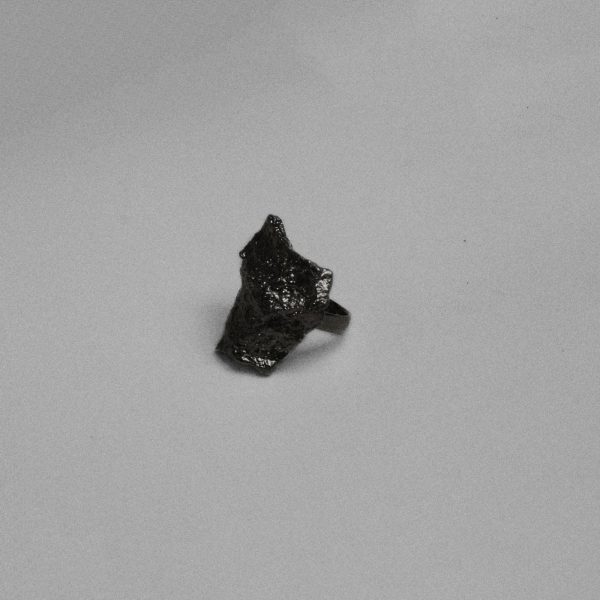 Bague Drapée facette « Pépite » et diamantée. Disponible en argent 925/1000, argent doré ou argent rhodié noir.