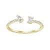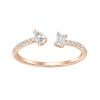 Ce modèle ouvert, monté sur un anneau massif pavé de petits diamants, incarne l’élégance moderne.