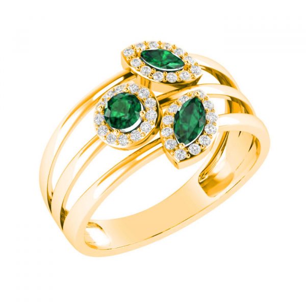 3 motifs couleurs entourage diamants qui positionne cette belle bague aéré en fils ors .