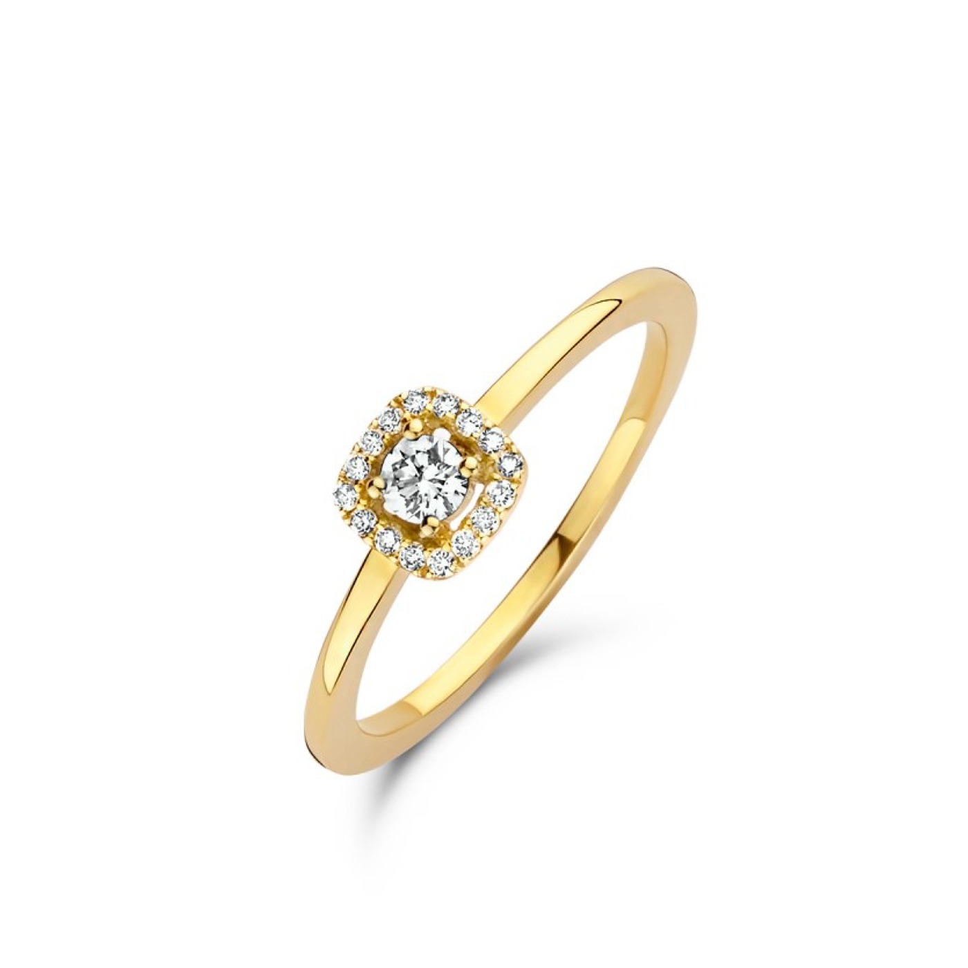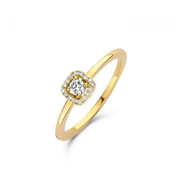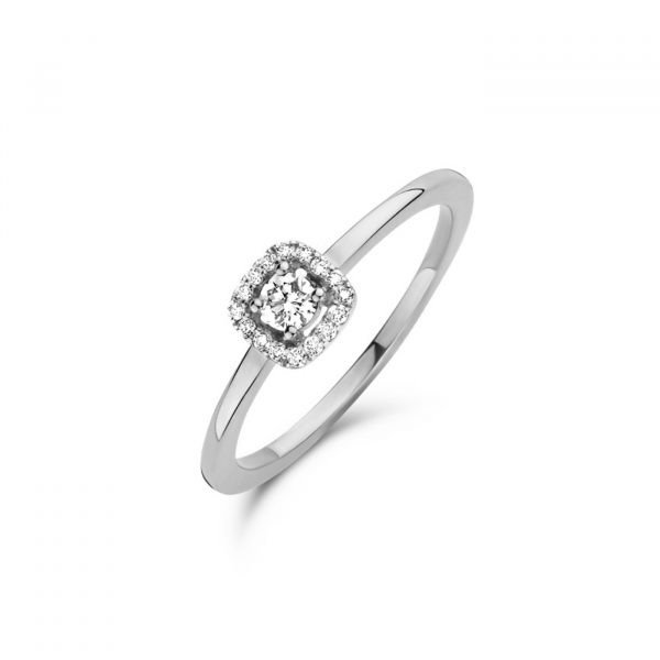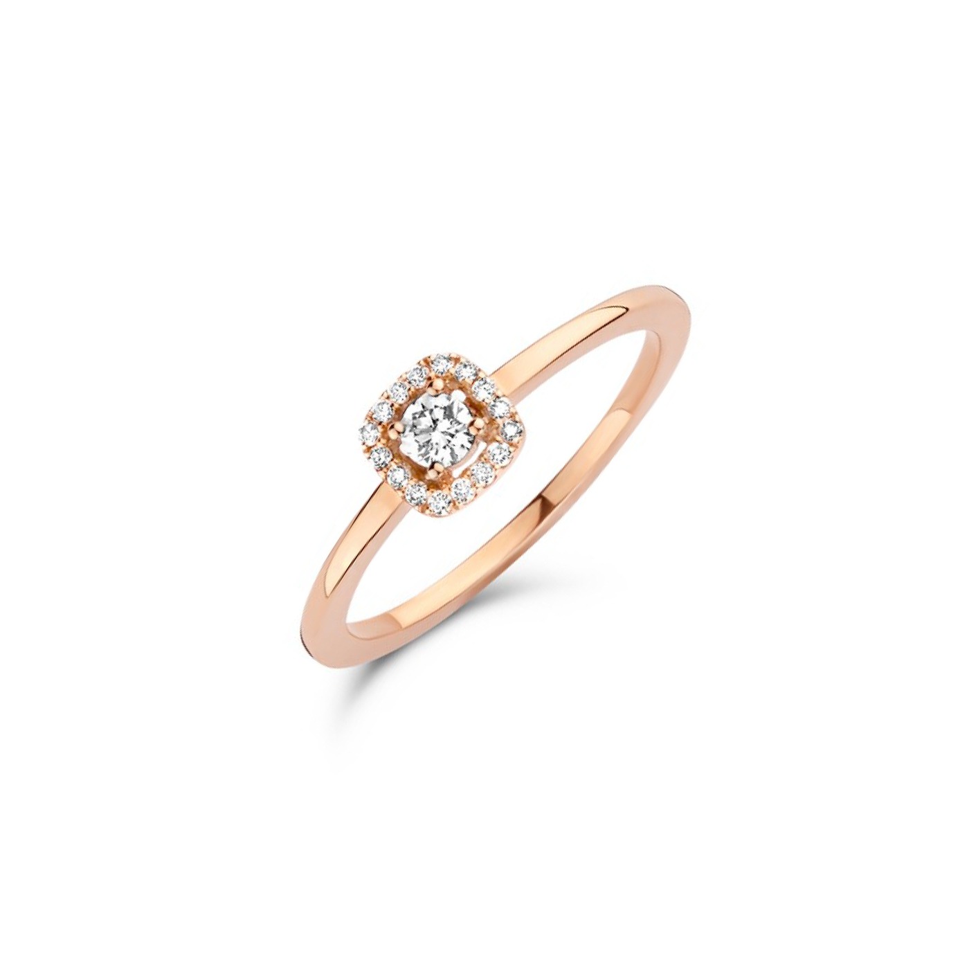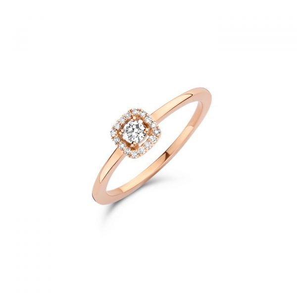 Bague solitaire minimaliste , avec son centre diamant et entourage carré, elle modernise ce joli model classic !
