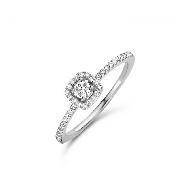Bague solitaire avec son centre diamant ,entourage diamant ,
