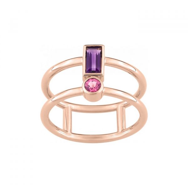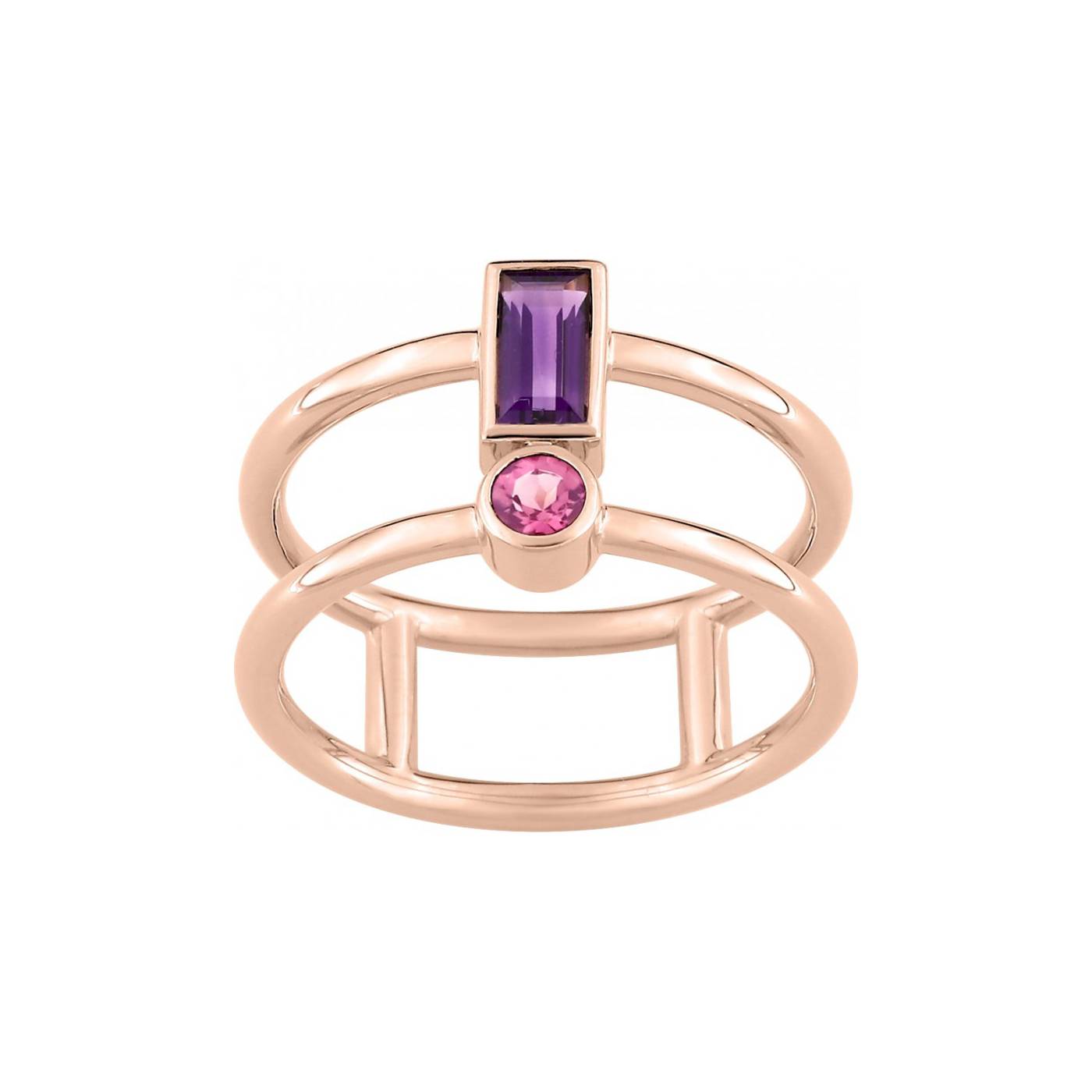 Double anneau en fil rond relié entre eux et surmonté de 2 pierres fines.