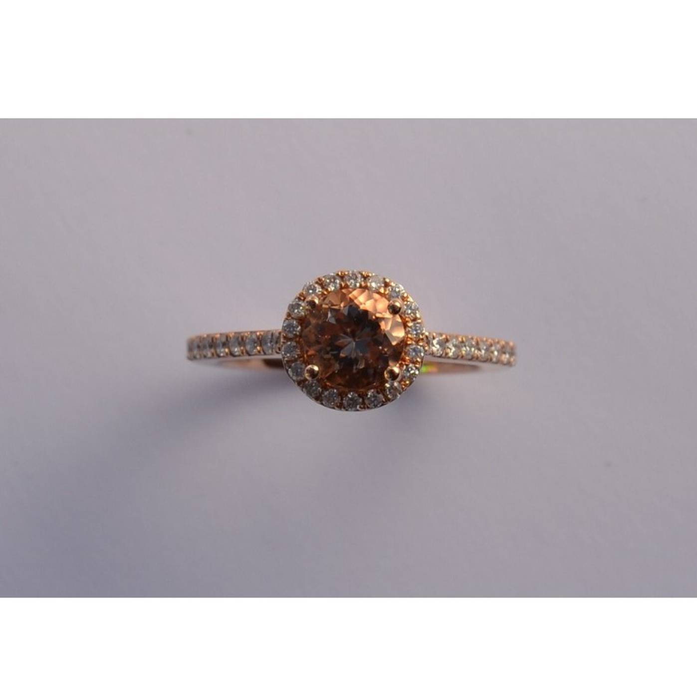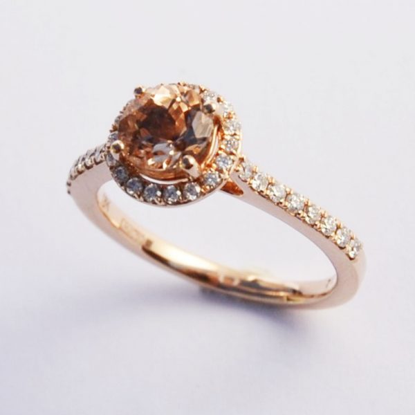 Magnifique solitaire avec sa pierre de centre une Morganite d’un diamètre de 6 mm taille brillant (0.74 carat)