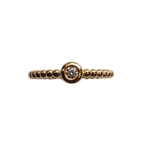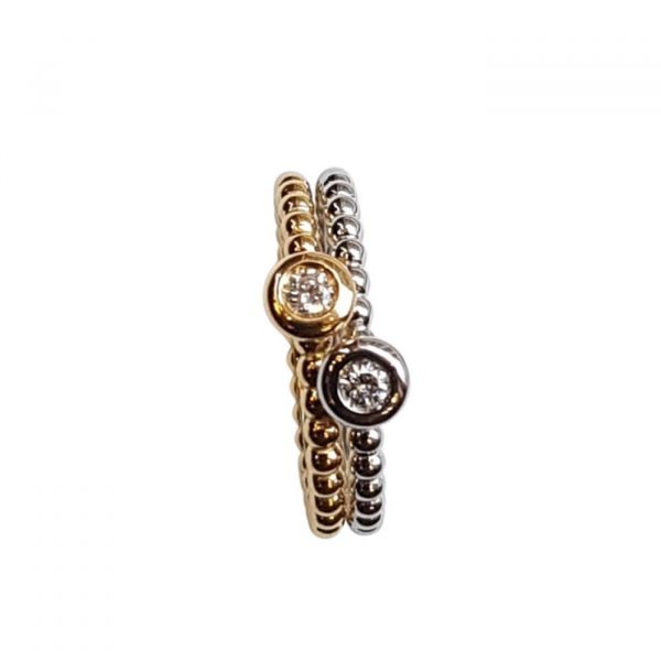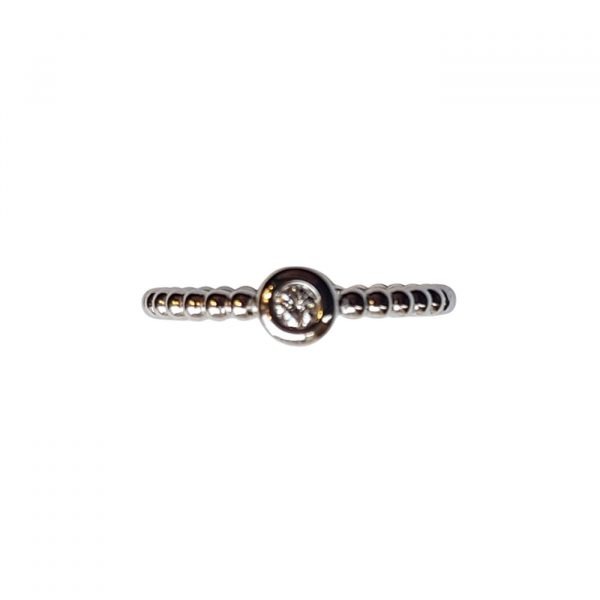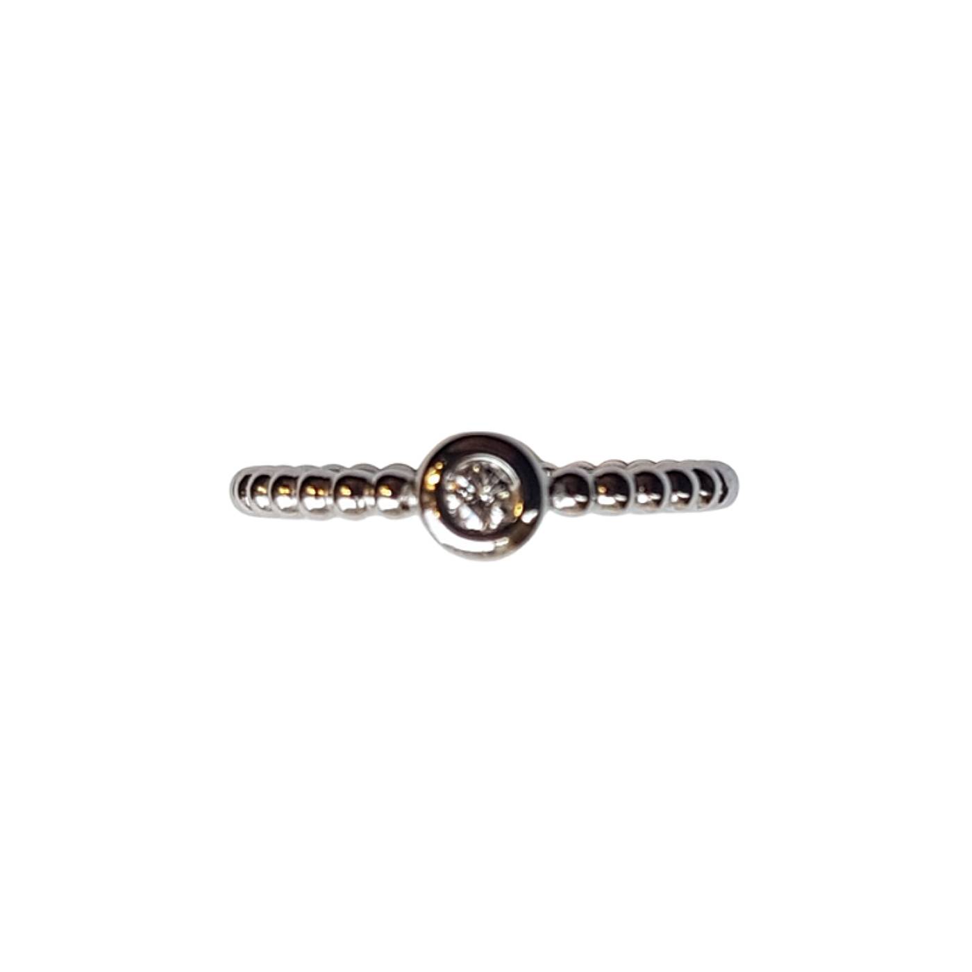 Un centre diamant serti clos qualité G/SI de 0.07 carat (modèle présenté en photo) existe aussi en 0.11 et 0.16 carat.