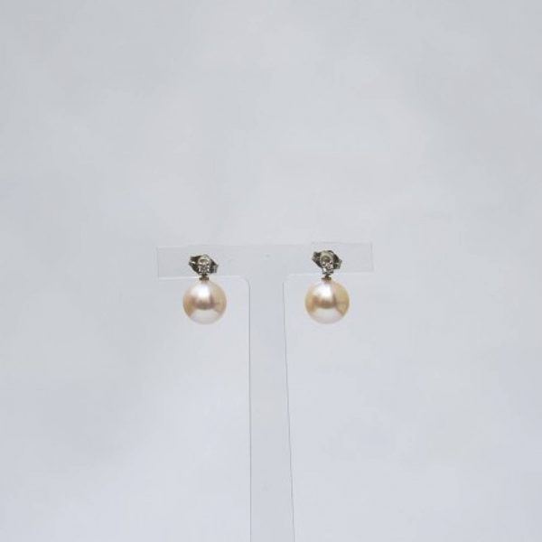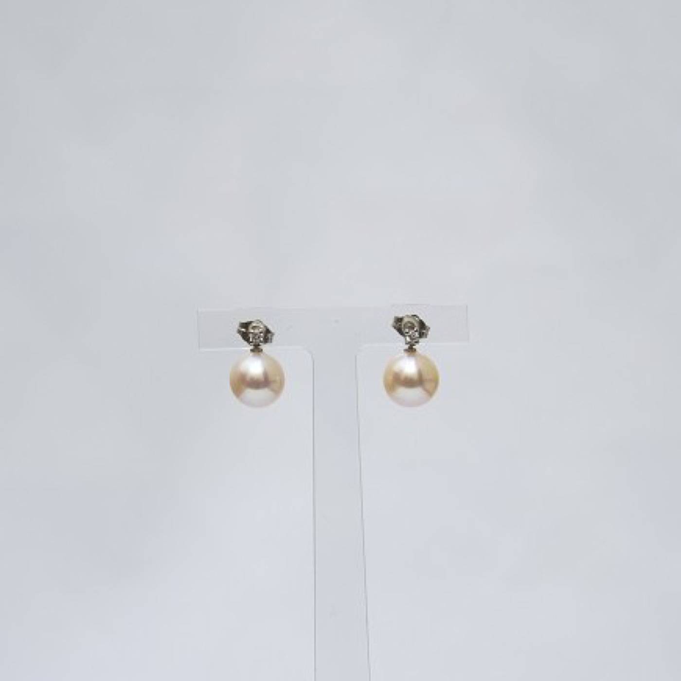 Duo de diamants G/VS 0.10 CT carat et perles de culture eau douce blanche diamètre 9,5/10