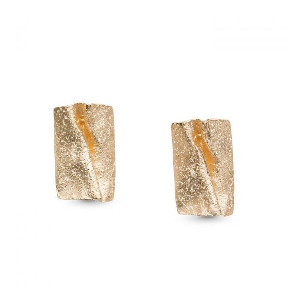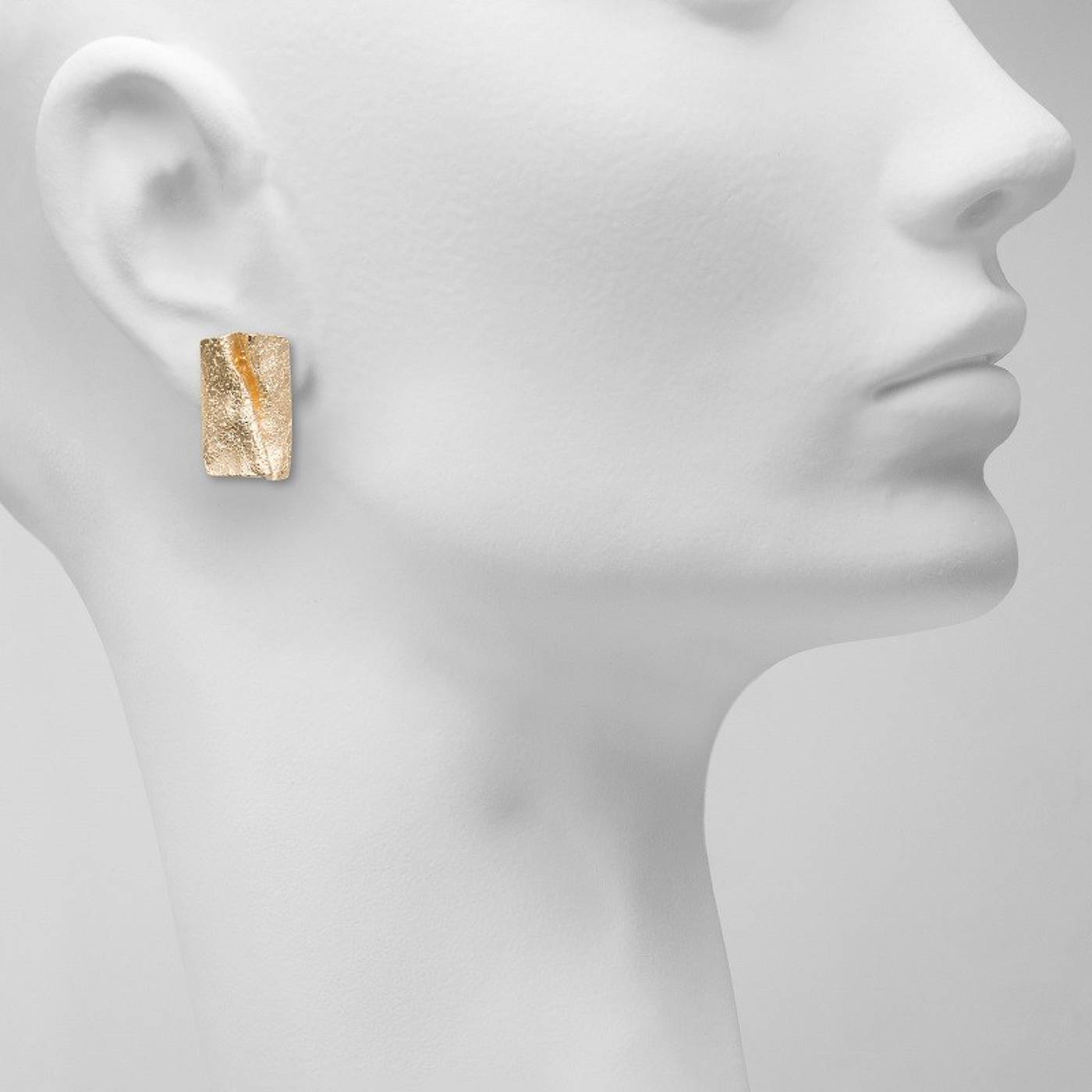 Boucles d’oreilles forme ruban ondulé satiné piqueté finition sculptée.