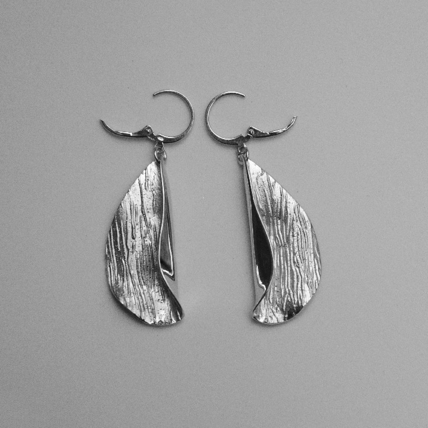 Boucles d’oreilles collection drapée, pendante, goutte d’argent 925/1000, argent doré ou argent rhodié noir.