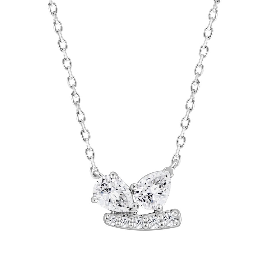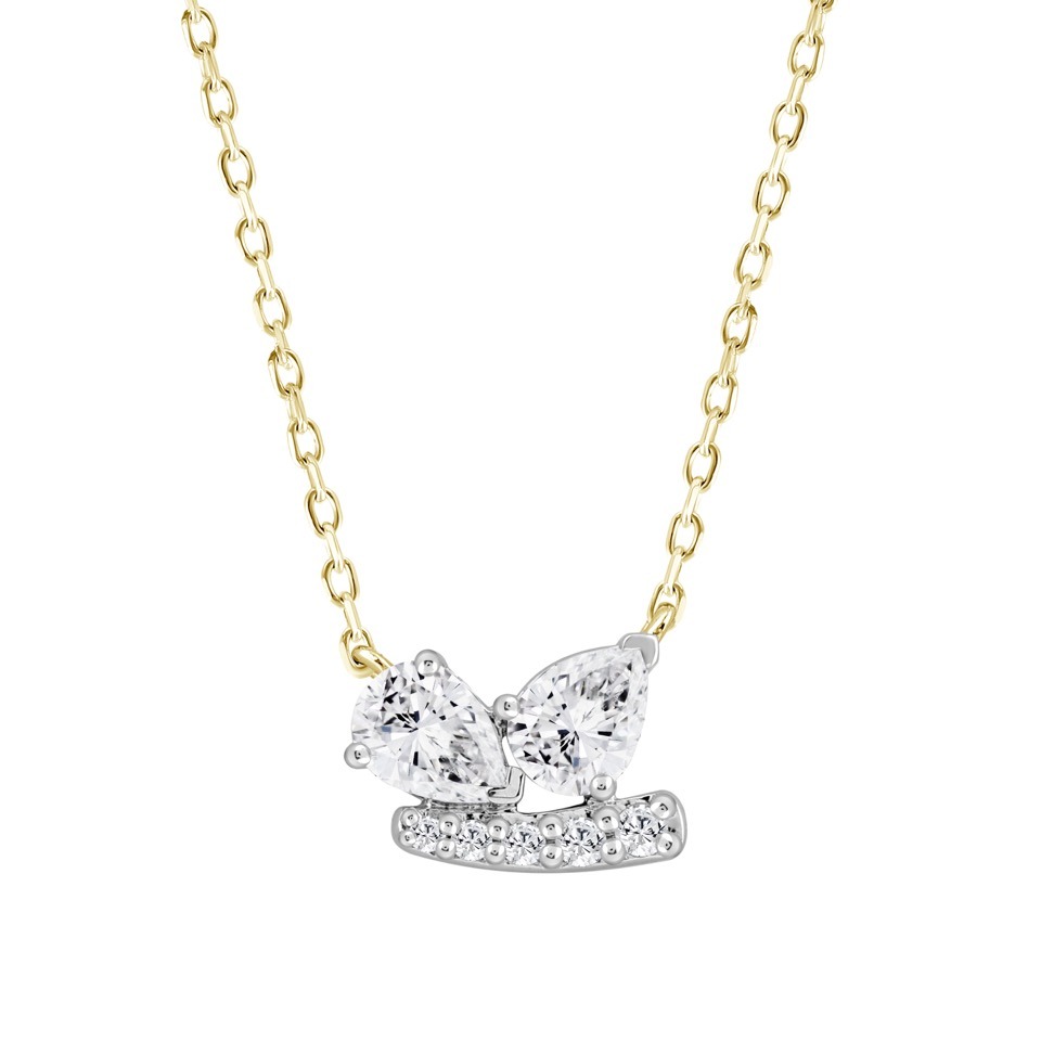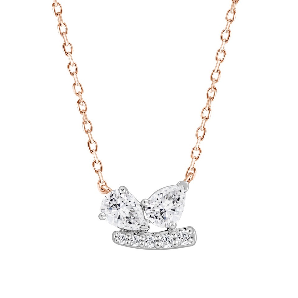 Collier original orné de deux diamants en forme de poire qui semblent « danser », sublimés par un délicat mouvement en ligne de diamants.