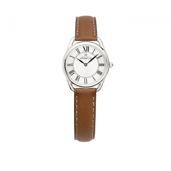 Des lignes courbes et une touche de modernisme pour cette collection Equinoxe à la fois citadine et classique. Cette montre Michel HERBELIN est habillée d’un cadran imprimé de chiffres romains et d’une boîte en acier. Montée sur un bracelet en cuir gold, cette montre assure un look chic et classique.