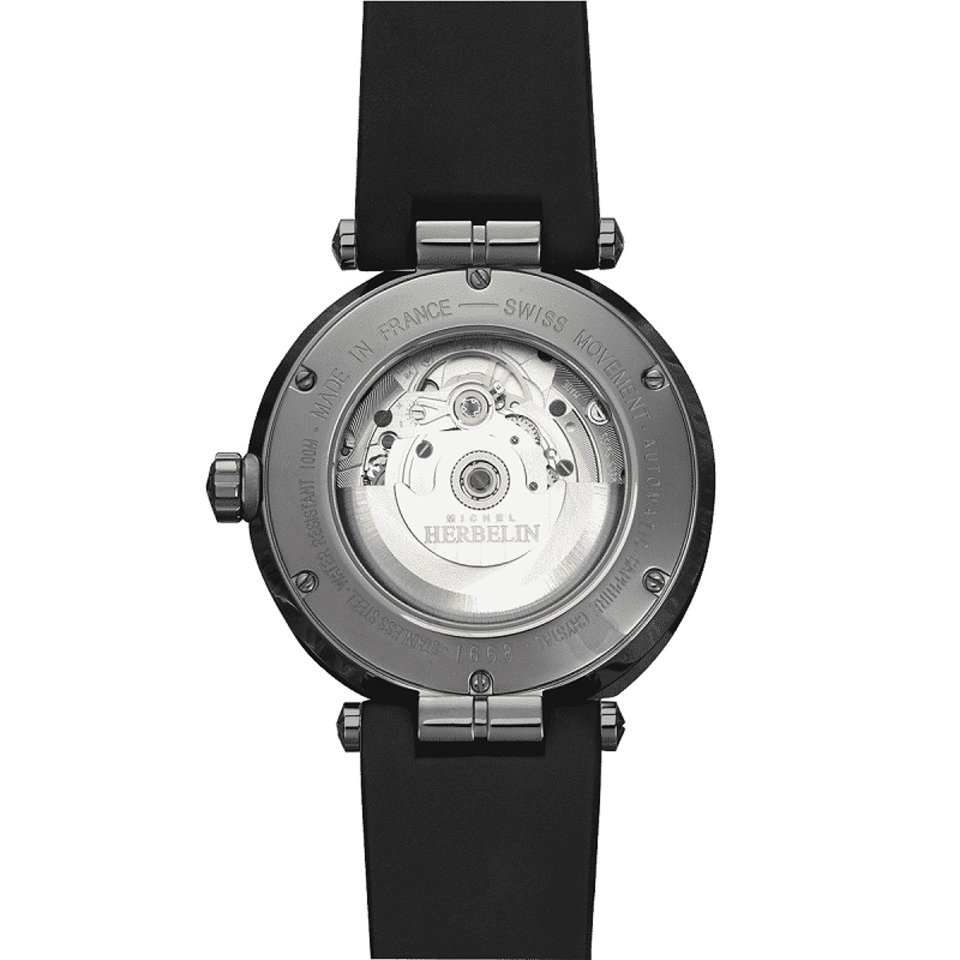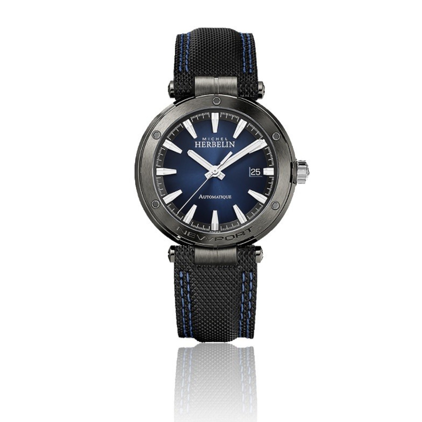 Cette Newport automatique trois aiguilles est équipée d’un boitier PVD noir orné d’un cadran bleu profond et finalisé d’un bracelet en cuir de couleur noire avec surpiqûres de couleur bleue, cette montre Michel HERBELIN offre une allure chic et sportive. Animé d’un mouvement automatique visible par son fond transparent, ce garde-temps est un véritable bijou horloger.