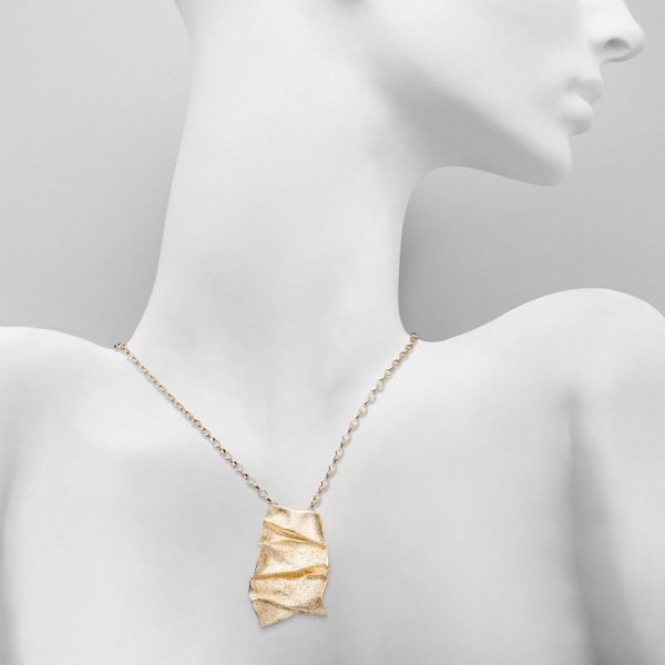 Pendentif forme ruban ondulé satiné piqueté finition sculptée.